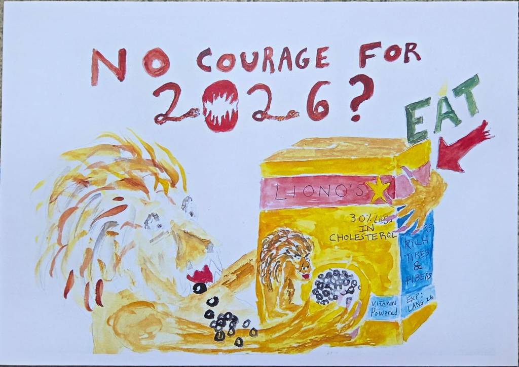 Liono’s first of 6 ceramic cereal boxes for animals approx. 40h x 30 x 10cm