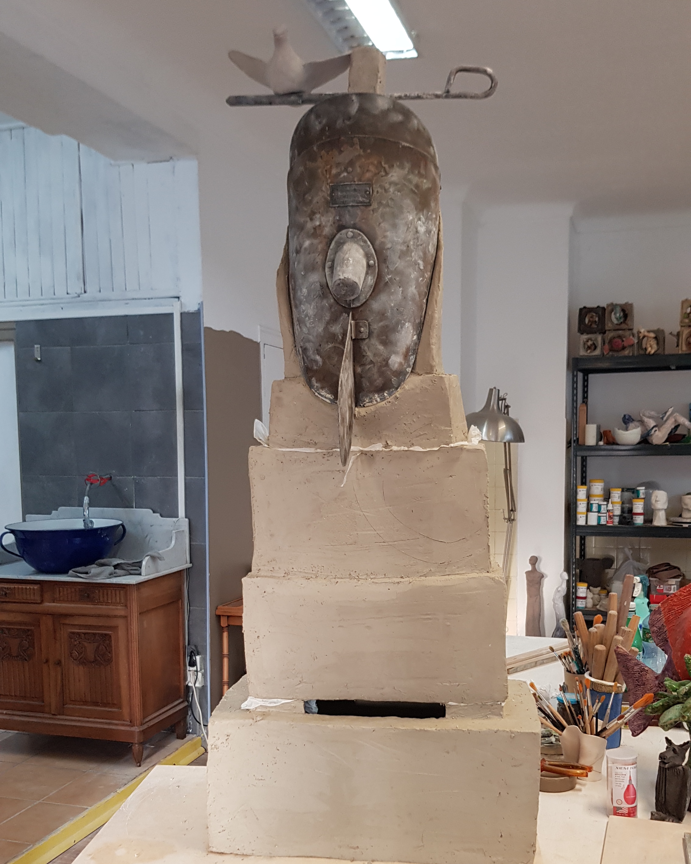 Work in progress/Commissions Ostrich leg chandelier project, 5 legs, approx 3m60 in height, for private home. Sheep getting their legs Head with old gate recovered for new nose. Birdman in progress Inspired by a Gilles Aillaud painting With this modular project I aim to build approximately 30 living spaces where an animal can reside. It should be finished by June 2019. Share this: Click to share on X (Opens in new window) X Click to share on Facebook (Opens in new window) Facebook Like Loading...